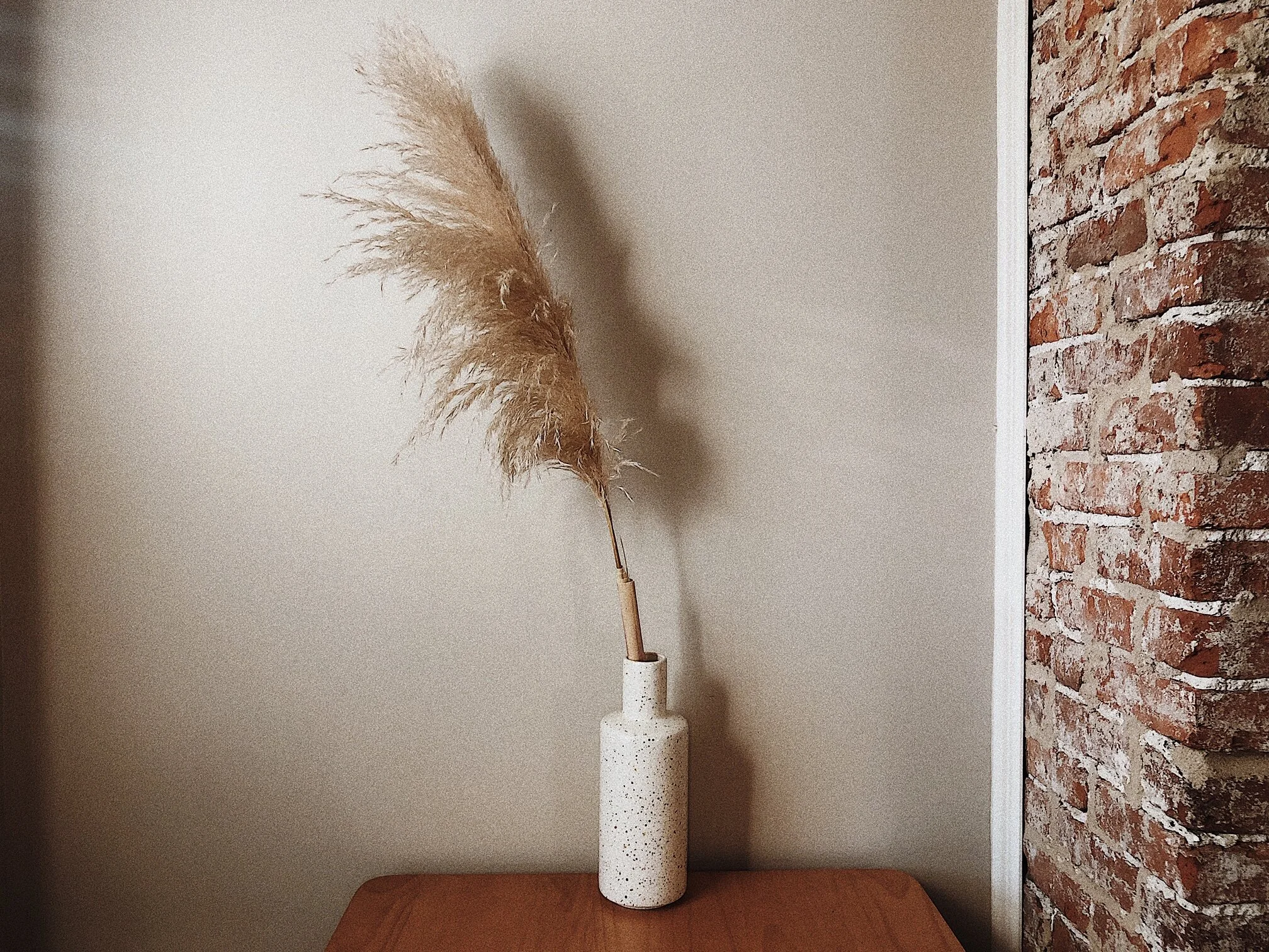 Last year, I picked up a small bunch of wheat from Hobby Lobby and put it in a vase next to the fireplace. This year, I got a pampas grass bundle from my friend’s store here in Nashville (The Golden Slipper) and put it in the same vase. The best news is pampas grass will work all year long.